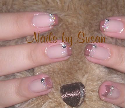 I love this combination to core! It's so simple, yet so elegant. The Chocolate Moose french is so soft looking, the glitters on top make the nails looked so special, just a crystal each nail makes it look a million dollars!! Love it to bits!! Demure girly nails are holding my fortune cat. Italian Love Affair as base, white "half moon" and a crystal on each nail.
