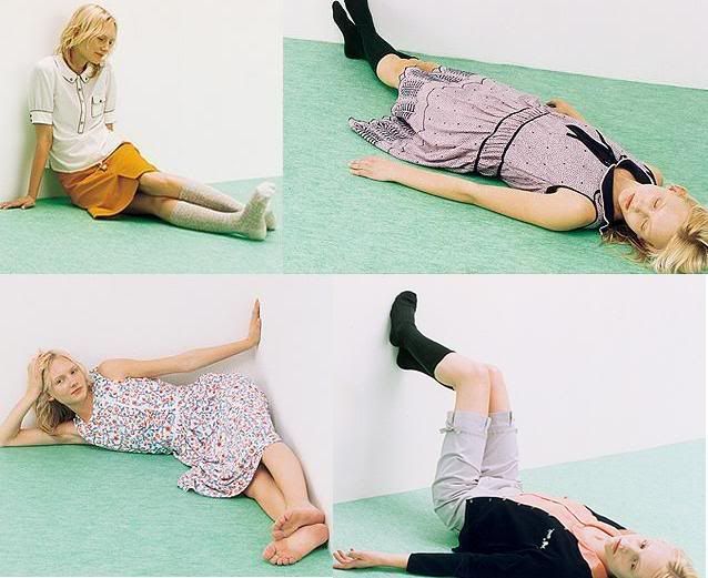 To complete the look of the model wearing girls clothes flower motifs, long socks look so funny with some of the relaxed pose and lazy.
